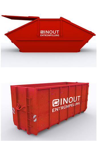 Wir besichtigen kostenlos und unverbindlich. Unser Service umfasst die Entsorgung einzelner Möbelstücke (wie z. B. ein Sofa), die Abholung mehrerer Möbel und Altmöbel, das Entfernen von Teppichen, Tapeten, Laminat, Bodenbelägen, Deckenverkleidungen und Fliesen, das Verschließen von Löchern, die komplette Entrümpelung von Wohnungen und Häusern, Haushaltsauflösungen, Sperrmüllentsorgung und die Endreinigung von Problemwohnungen wie beispielsweise Messiwohnungen. Auch die Schlüsselübergabe an Wohnungsverwaltungen sind Teil unseres umfangreichen Angebots. Wir organisieren den Abtransport und die Verwertung Ihrer Altlasten. Wir übernehmen die gesamte Logistik und hinterlassen Ihre Wohnung inklusive Keller und Garage besenrein. Gas- und Wasserabmeldung kann auf Wunsch auch von uns erledigt werden. Sie sparen Zeit, Geld und wir garantieren eine umweltgerechte Entsorgung. Gegenstände, die eigentlich entsorgt werden sollen, aber noch gut erhalten sind, können mit dem Preis angerechnet oder über unseren Online-Shop www.inoutshop.de verkauft werden. Außerdem bieten wir Absetz- und Abrollcontainer in den verschiedenen Größen bis 40 m³ mit oder ohne Deckel an.